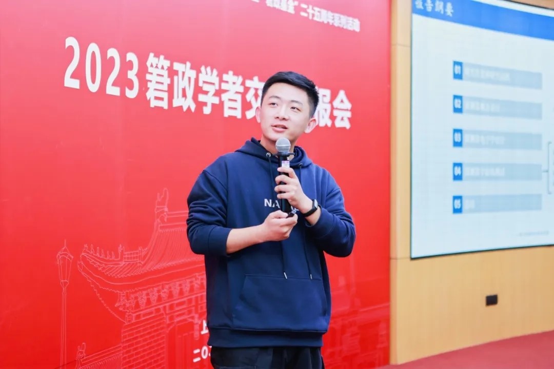 䇹政学者王曦阳在2023年䇹政年会上汇报研究成果