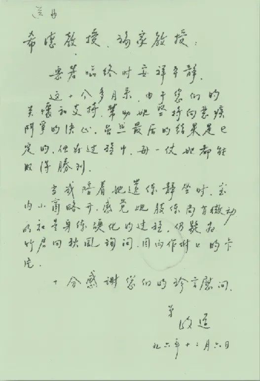 1996年,秦惠䇹女士不幸因病逝世,复旦大学谢希德、杨福家、陶瑞宝、周鲁卫等纷纷给李政道先生去信悼念和慰问,李先生一一回信表示感谢。