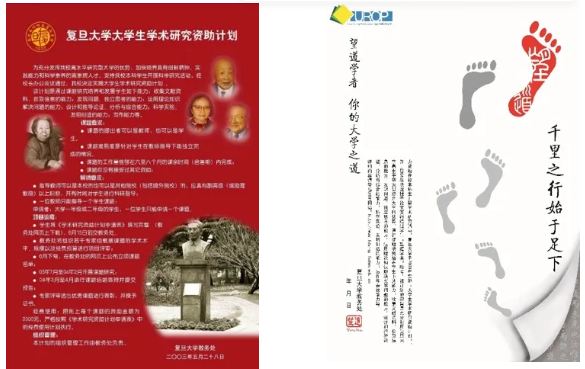 2005年,为分享䇹政学者们的求学故事和心得,复旦大学教务处组编了《我的阿拉丁神灯,在复旦》一书。延续这一思路,2007年复旦学生自主创办了刊物《为学》,为参加FDUROP的同学搭建展示科研成果、讲述求学故事、分享研究心得的平台。