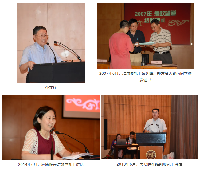 杨福家(曾任复旦大学校长),孙莱祥(曾任复旦大学副校长),全国人大常委会副委员长蔡达峰(曾任复旦大学副校长),上海市教委原主任陆靖(曾任复旦大学教务处处长),上海教育考试院原院长郑方贤(曾任复旦大学教务处副处长),陆昉教授(曾任复旦大学副校长),桂永浩教授(曾任复旦大学常务副校长),徐雷教授(时任复旦大学副校长)都曾参与典礼,聆听“䇹政学者”们的学术报告。