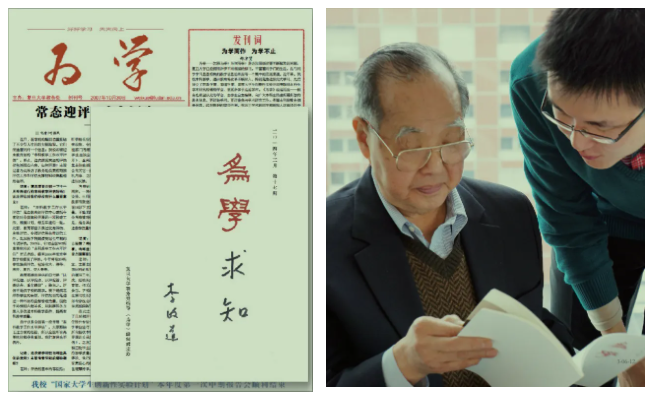 2014年,复旦师生将最新一期送到李政道先生手中,李先生读后欣然在封面写下“求知”二字回赠,勉励同学们为学不止,求知亦不止。截至目前,《为学》已出刊21期。