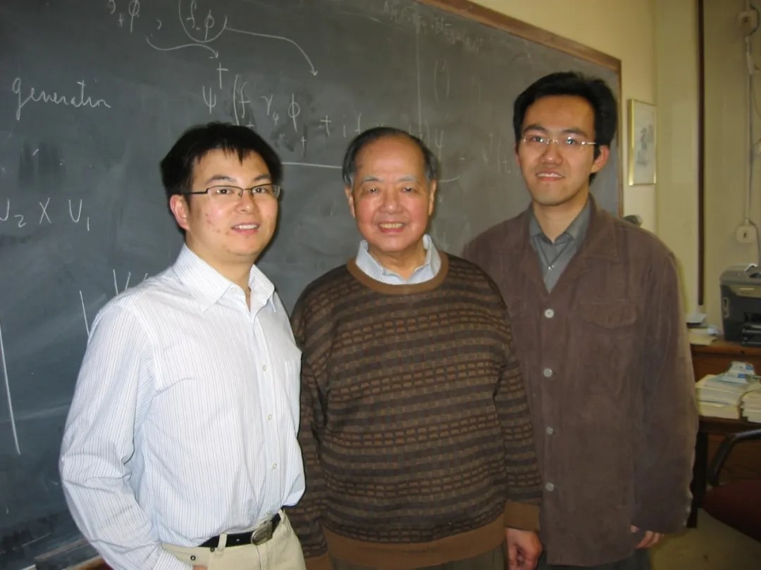2007年3月,“䇹政学者”陈亮与袁陈杰相约去李政道先生的办公室看看,有幸遇到了李先生。他们向李先生表达了感激之情,还请教了一些问题,深受教益,并留下了一张珍贵的合影。照片传回复旦,“䇹政学者”们惊喜地发现,李先生满面笑容的那张经典照片,原来是在他自己办公室的黑板前拍的,多年的“迷”终于解开了。