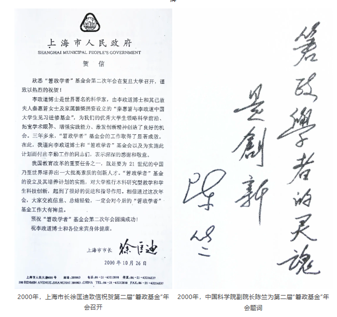 李政道先生听闻此消息,向复旦大学发来贺信,高度评价复旦大学“䇹政”项目的实施。